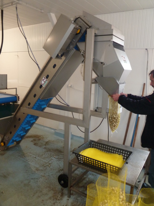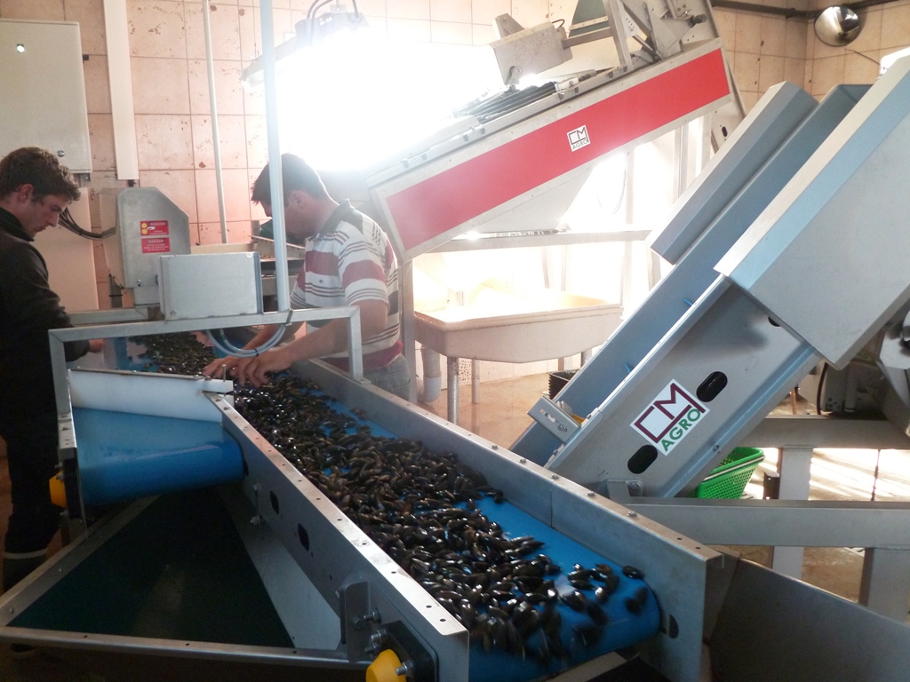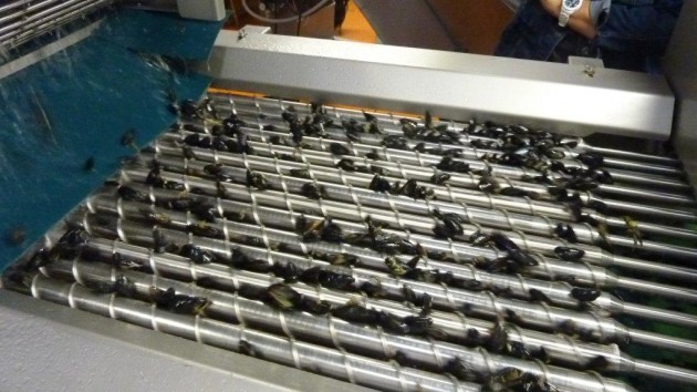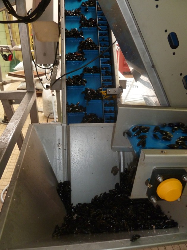 Mise en filet sous forme de « boudin » des petites moules en vrac ou grappées